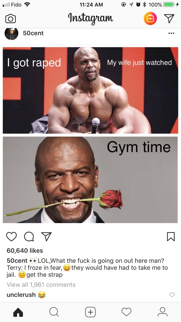 Actor and newly founded activist Terry Crews recently testified in front of Congress regarding the need for men to speak up about sexual assault, while also discussing his own assault by a top Hollywood executive. In response, 50 Cent posted pictures mocking Crews. Along with the photos intended to question his masculinity, 50 wrote, “"LOL, What the fuck is going on out here man? Terry: l froze in fear, they would have had to take me to jail. Get the strap".